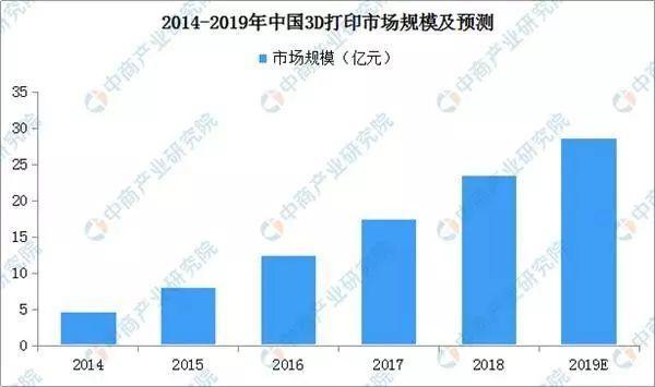 全球3D打印正火熱,由于中國引進3D打印技術較晚,與國外有一定差距,但近年來也得到快速發展。目前,中國的3D打印應用主要集中在家電及電子消費品、模具檢測、醫療及牙科正畸、汽車及其他交通工具、航空航天等領域。據《2019年3D打印行業市場前景及投資研究報告》顯示,2018年中國3D打印市場規模達到23.6億元,同比增長近42%。伴隨著中國3D打印技術的相應成熟,在航天航空,汽車等行業需求將持續增加,預計2020年中國3D打印市場規模將近30億元。